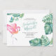 Ange tonen för ditt soliga firande med de här tropiska strandfesten, perfekt för ett strandbröllop i Nyckel Väster, Florida, förlovning eller möhippa. Den här elegantens tropiska inbjudan innehåller ett handskript för namn i snyggt, med händelseinformation i ett tidlöst träkolsserif-teckensnitt på en skarp vit bakgrund. Den här designen är framtagen av ursprungliga vattenfärgsbilder av rosa flamingos och monstera handflatan löv, och innehåller vibranta blues, gröntar och turkos. Baksidan har en kompletterande grönt av tropiska turkoser, som kompletterar den festiva, botaniska estetiken. Oavsett om du är värd för en Florida Nycklar-händelse, Karibien party, eller planerar målbröllop inbjudan, ger den här designen sofistikering och öcharm. Det är också perfekt för botaniskt inbjudningskort för möhippa, rosa flamingo sommar inbjudan, eller någon kustsamling. Utforska fullt med matchande kontorsmaterial på Do Berätta för A Belle på Zazzle för ett komplett, samordnat utseende. Gör nästa händelse oförglömlig med de här vackert utformade Florida Nycklar-händelserbjudandena.