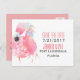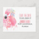 Chic tropiskt vykort bröllop spara datum, med vattenfärgstryck av rosa flamingo, framtill. Anpassa, fram och bak, med information från bröllop.