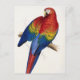Edward Lear Tropical Parrot-vykort. Naturalistisk målare Edward Lear skapade några av 1800-talets mest bedövande fågelmålningar. Särskilt hans papegojmålningar är några av de mest berömda i världen. I detta särskilda arbete återges moroten Macrocercus aracanga eller Ara Macao. Fågeln är en vibrerande färgad med röda fjädrar, gult, blåa fjädrar och gröntar. En vacker gåva till fläkt av papegojor, Edward Lear, fågelmålning och vintage-utskrifter.