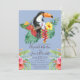 Tropiskt Watercolor Toucan och Hibiscus Bröllop Inbjudningar