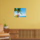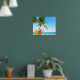 Den här utformningen har färgstarka ytorna som står upp i sanden med handflatan träd, strand och hav i bakgrunden. #surfa #surfer #roligt #coola #strand #tropical #sport #slappna av #surfing #home #decor #art