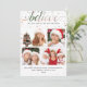 Vår roliga BELIEVE-helgdesign kombinerar ett traditionellt tema med en modern texteffekt - ditt foto avgör färgen på typsnittet "BELIEVE", samt gnistan och snöflingorna på framsidan och baksidan! Ladda upp ditt foto och ändra färgschema! Det är roligt, eller hur? #BELIEVE #Holidays #Christmas || Denna styling säkerställer att typsnittet och de tryckta accenterna matchar ditt foto. Textraden under "BELIEVE" - "in the Magic of the Season" - kan anpassas, liksom namn och datum, naturligtvis. Se till att kika på baksidan också, där era namn visas en andra gång som skapare av denna vackra högtidshälsning!