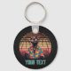 Timless Tropical Cat Round Keychain: En svart katt med överdimensionerade solglasögon och en hawaiisk skjorta strejkor i coolan mot ett tropiskt solnedfall.