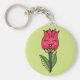 Cute-blommans nyckelkedja med en vektorillustration som skildrar en blommigt tecknade figurer som liknar ett tulp och en ro som leende lyckligt. Den här illustrationen i roligt vår har ljusröd färg och grönt färg.