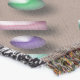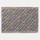 3D-knappar i rektanglar och cirklar visas i många pastel färg. Utforma replikerade många-tider på en diagonal över filten.
