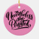 Klicka på Anpassa om du vill välja bakgrunden färg efter eget val! Låt henne tala! "Trots detta har hon framhärdat" i häftiga, svarta handskriftsbokstäver på en ljus rosa bakgrund visas på denna helgdag ornament. Att hedra det grövsta av kvinnor överallt som Elizabeth Warren. För den feministiska eller framtida kvinnliga ledaren. En del av intäkterna kommer att doneras till ACLU!