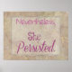 En fras som snabbt har blivit en tilltagande gråt för kvinnorörelsen, liksom det nuvarande politiska rättigheter som rörelser i allmänhet. Styrkan att framhärda kommer att fortsätta att vinna över alla hinder i tid. Ett perfekt sätt att visa ditt stöd... Trots det, så stod hon fast.