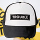 Gör ett djärvt uttalande utan att säga ett ord. Den här **TROUBLE** mössan har en ren svart-vit blockdesign som sticker ut med attityd. Oavsett om du rör om i grytan eller bara håller det verkliga, är denna andningsbara mesh-bakmössa din bästa för vardaglig rebell och oförskämd självsäkerhet.