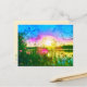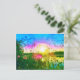 POSTCARD med grönbladfilter på mitt foto av solbelysta blommar över Trout Sjö