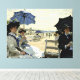 "Trouville Beach"-tavlan fångar en livlig dag på strandorten Trouville-sur-Mer i Normandie. Med sin karakteristiska intsionist stil skildrar konstnären strandens pulserande atmosfär, komplett med en full folkmassa, färgstarka parasoler och ett lekfullt samspel mellan ljus och skugga på sand och vatten. Scenen utstrålar en känsla av fritid och avslappning och uppmanar tittarna att föreställa sig att de skulle gå längs kusten eller loppa under sol.