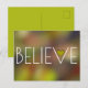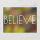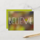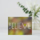 Det här är ett sött inspirerande vykort med ord "BELIEVE" tryckt i stort vitt brev på en färgstark abstrakt i roligten. Ett sött guld-hjärta finns i brev V.