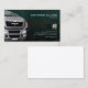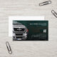 Affärskortet för lastbilslogistik och transport har en påhängsvagn av silver på den lämnat halvan av kortet, gömt av en halvgenomskinlig svart textruta på högerna där ditt namn och kontaktuppgifter visas. Perfekt för gods-, frakttjänster, logistik, lastbilschaufför, lastbilschaufför, lastbil, släpvagn, lastbilar, transport, sjöfart, gods- eller fordonsteman.