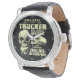This wall clock features a bold and edgy design for a no-nonsense truck driver. Against a black background, it displays a menacing skull with its tongue sticking out, alongside a semi-truck. The text "WALK AWAY THIS TRUCKER HAS ANGER ISSUES AND A SERIOUS DISLIKE FOR STUPID PEOPLE" is prominently displayed in distressed white lettering, making a strong and humorous statement about the driver's personality.