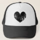 Truckerkeps för tryckt svart hjärta. Vintagens lock med den avfasade symbolen kärlek.