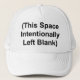 En Truckerkeps med orden "Detta utrymme Lämnade avsiktligt tomt" inom parentes på framsidan.