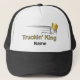 En lastbilsförarehattpassform för en kung - "en Truckin kung". Visas en svartvit hatt för lastbilsförare (baseball) med en svart hand plockade cab-över stilhalv-släpet som ha på sig en guld- krona. Under lastbilen är den att uttrycka "Truckin kungen" i guld- bokstäver och nedanfört som är ett anpassadetextfält för ett namn.