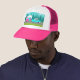 Denna Truckerkeps i Retro Camper/Trailer och Car har ett modernt, minimalistiskt tecknad teckning som lämnar dig redo att ta dig till den öppna vägen. Som en hyllning till 1950-talet har den här konstruktionen en vintage turkofferbil med vit topp, som drar en kitschyfärs resvagn till slutdestinationen. Den helt återställda, retro RV har en shock rosa under halva, vit överdel och en turkoshöjande blixt som separerar de två. Dörren på kamerans sida är också turkos. Den sista accenten är att vinge skjuter ut shock rosa från hemmet på hjul. Lycklig-kamerorna kör en väg med grått. Vägen är omgiven av lush, grönt gräs. I bakgrunden kan vi se tealsilhuetterna från en veritabel skog av cedar träd, mot ett akvarium himlar med fuktiga, ljusblå moln. Denna utformning är perfekt för alla från pensionerade hippies, unga hippstrar eller någon som vill återuppleva några underbara barndomsminnen. Det bästa är att ingen frågar: "Är vi där än?"