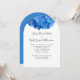 Mall för inbjudan till äkta blått hydrangea-blomma. Enkla vita kort med svart text i modernt skript för namn och utskriven text med versaler för alla övriga. Vid grund kan en ny plats adress för mottagningen inkluderas. Ordningen har paret som bjuder in gäster. Omvänd är helblått.