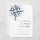 Förlovningsfesten för kustnära chic innehåller en illustration av marinkompasset ro i vintage hand plockade, med information om förlovningsfesten i klassiskt marinblått. Perfekt för strand, sommar eller nautiska förlovningen firande, dessa inbjudningar till stil vid kusten går tillbaka till vitt blått och vitt rand. Designad för att samordna med vår sanna nordliga nautiska bröllop och händelsekamling.