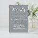 En underbar bilaga till ställe innehåller alla uppgifter som inte finns med på bröllopsinbjudan eller OSA kort - t.ex. mottagningsinformation eller bröllop webbplats. Koordineras perfekt med True Simpity-samlingen. Det här är en blandning eller matchningssamling. Kontakta mig om du vill ha hjälp med att anpassa textdelen av den här detaljinfogningen.
