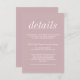En underbar bilaga till ställe innehåller alla uppgifter som inte finns med på bröllopsinbjudan eller OSA kort - t.ex. mottagningsinformation eller bröllop webbplats. Koordineras perfekt med True Simpity 2-samlingen. Det här är en blandning eller matchningssamling. Kontakta mig om du vill ha hjälp med att anpassa textdelen av den här detaljinfogningen.