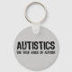 Autiker Autismens sanna röst. Enkel text är bara en autistisk höger. Svart text på gråttets bakgrund. Nyckelkedja för autismaktivism.