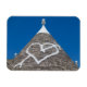 Rektangulär fotomagnet med en närhet av stenplattan tak i ett traditionellt trulli-hus i Alberobello, Apulien i Italien.