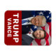 Trump och Vance med patriotisk amerikansk flagga bakgrund.