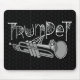 Trumpet i kombiwebtext med bilden av ett trumpet täckt i bwebs är en humoristisk Halloween-presentdesign för brasmusiker, skolmusiklärare och studenter i konsert, jazz och marschband.