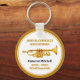 This modern custom gold high school marching band keychain features the student and band name under the trumpet instrument. Customize for symphonic, wind ensemble, or concert band members or their director for a great graduation keepsake gift.