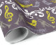 Roligt mönster av Trumpets och små fåglar i lila och guld.
