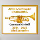 This modern custom gold high school marching band poster features the student and band name under the trumpet instrument. Customize for symphonic, wind ensemble, or concert band members or their director for a great graduation keepsake gift.