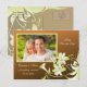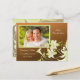 Ett ekonomiskt och vackert sätt att meddela er bröllopsdag och be era gäster att Spara datumet. En blandning av koppartoner är kombinerade med vackra trumpetblommor och bladverk som flödar över i botten och sveper runt baksidan av detta vykort.