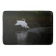 Ett foto av ett vitt svan som sträcker ut det är vingar medan det väller in i en ytlig flod. Upphovsrätt ©2019 Kimberly J Tilley