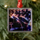 Bilden på den här Metall-ornamenten är ett originalfoto av en trumuppsättning. De glänsande svarta trummorna med sina silkesfälgar avspeglar färgerna på ljus i studion, blues, och gröntar. Cymbolerna ovanför trummorna väntar på att slås.