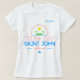 Dekorativt textsegment. Saint John. Karibiens paradistext elegant av blått och rött färg. En silhuettbild av en liten tropisk ö med grönt handflatan träd och sol över den. En liten bild av en lång frakt vid grund. Ett anpassade namn Elizabeth längst upp i högernas hörn av designområdet. Du kan ändra eller ta bort namn. Vit bakgrund eller ljusbakgrund för färg. Elegant t-shirt på ett tema med Karibiska öar och stränder. Bra, unik gåva av typen ett slag eller souvenir för turister och besökare i ställe. Sommar, hav, hav, strand, semestertema. Glöm inte att välja en annan storlek, stil, färg och klädets gender. Om du vill ändra namn typsnitt eller placering, bara använda CUSTOMIZE-knappen, tack. Du kan överföra den här designen till en annan valfri produkt, bara använda ett alternativ till högerna av den här beskrivningen. Ha en trevlig sommarsemester!