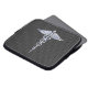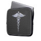 Designen för symbol för symbolisk kromnågot liknandeCaduceus som den medicinska framläggas här på en svart bakgrund för kolfibertryck. Caduceusormarna är designade att se något liknande som den göras av krom. Bran för ett studententillfälle, ett påstående för ditt yrke eller för en gåva med den din medicinska look söker efter.