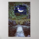 I en drömlik inställning mumlar en avskild bäck försiktigt med ljud av en liten vattenfall amidst influtet mjukt månsken för frodig omgivning.