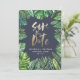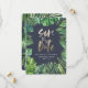 Den moderna tropiska vattenfärgsbladet handflatan i löv sparar datumkorten. Handmålad guld-effektskripttext. En del av en sommarinsamling av trender. Bakgrunden till färg kan ändras.