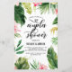 Inbjudan gäster till ditt evenemang med anpassadet par duschinbjudan. Den har vattenfärgen hibiscus, handflatan löv, banan löv och andra tropiska accenter. Denna duschinbjudan i par är perfekt för sommarduschar och tropiska par duschar.