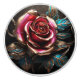Den speciella utformningen har en vacker ro-blomma, färgad i rött, blått och koppar/guld. Det sätt på vilket färg blandar ihop ge känns djupt, som ro, kommer ut från yta. Det är som att ha en riktig ro i tid, med en aning lyx och sofistikering. Den här designen skulle ge lite elegans till vilket rum som helst och få dig att känna att du är omgiven av tidlös skönhet.