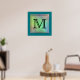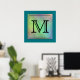 Tryckt Anpassningsbar Monogram Image på Teal Mönst Poster