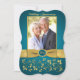 Denna eleganta teal blågröna och guldfärgade blomsterinbjudan med rullar för 50-års bröllopsdag har ett tryckt guldband och en tryckt falskt graverad teal- och guldfärgad medaljong. Den har ett mallområde där du kan ladda upp ditt eget digitala foto. Du kan ta bort den stiliserade kursiverade texten "Wedding Anniversary" eller "50th". All text är anpassningsbar, liksom pappersvalen. ****OBS: om du byter till guldfärgat metalliskt papper är det en mycket mörk messingguld och det kommer att förändra designens färger (göra fotot guld etc.), så jag rekommenderar INTE att använda det pappret. Filttpapper kommer också att förändra färgen på ditt foto något. Också, om du ändrar typsnitt eller teckenstorlek, kanske din text inte passar längre. Zazzle redigerar inte någonting för stavfel, justering eller någonting annat, och jag kommer inte att se din inbjudan. Allt kommer att skrivas ut som det visas på din skärm. Om du behöver hjälp med inbjudan, vänligen kontakta mig INNAN du beställer den. Denna inbjudan är utformad för att passa den böjda 5x7-storleken. Om du byter