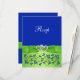 Detta eleganta och romantiska limegröna och kungblå blommande bröllops-R.S.V.P.-kort har ett tryckt band och rosett med ett par tryckta diamantsmycken och en falsk glittrig hjärtbroche på som matchar bröllopsinbjudan nedan. Texten och typen av papper kan anpassas. OM du ändrar storlek på inbjudan, eller om du byter typsnitt eller storlek på teckensnittet, kan en del av designen och/eller texten kapas. Allt kommer att skrivas ut som du ser det på din skärm. Jag kommer inte att se din inbjudan, och Zazzle kommer INTE att rätta någonting (stavfel, feljustering osv.). Om du behöver hjälp med denna inbjudan, vänligen mejla mig INNAN du lägger din beställning. Om du behöver