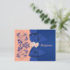 Detta eleganta och romantiska bröllops-svarskort i persikofärg och kunglig blå med blomstertryck har ett tryckt band och rosett med ett par tryckta diamantsmycken och falska glitter ihopkopplade hjärtan som matchar den nedan visade bröllopsinbjudan. ****Vänligen notera att det inte finns någon prägling eller upphöjda bilder på detta kort. Zazzle redigerar INTE någonting gällande stavning eller justering eller mellanrum, så se till att din text är exakt som du önskar den. Jag kommer inte att se din inbjudan, så om du behöver hjälp med anpassningen av min design, vänligen kontakta mig INNAN du beställer. Allt är tryckt plant. Texten och pappersvalen är helt anpassningsbara, men jag föreslår inte att du ändrar papperet till kraft eller silvermetallic, eftersom de är mycket mörka och kommer att förändra