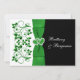 Denna romantiska svart-vit och smaragdgröna blommande bröllopsinbjudan har ett tryckt sidenutseende band och rosett med ett par tryckta diamitsmycken och falska glitter hopslagna hjärtan som skulle vara perfekta för ett bröllopstema på St. Patrick's Day. ****Vänligen notera att det inte finns någon prägling eller upphöjda bilder på detta kort. Zazzle kommer inte att redigera någonting för stavfel eller justering eller mellanrum, så kontrollera att din text är exakt som du vill ha den. Jag kommer inte att se din inbjudan, så om du behöver hjälp med anpassningen av min design, vänligen maila mig INNAN du beställer. Allt skrivs ut plant. Det kan också användas för flera andra speciella evenemang, som årsdag eller förlovning. Om du behöver