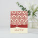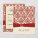 **Observera att bandet och juvelerna är TRYCKTA PÅ BILDER och inte är äkta. Detta krämfärgade och röda damast-svarskort matchar den bröllopsinbjudan som visas nedan.