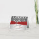 Detta svarta och silvergrå damasktackkort har ett TRYCKT rött band med en TRYCKT diamantspänne som matchar de bröllopsinbjudningar som visas nedan. Du kan också välja den större storleken 5x7. Om du behöver andra matchande föremål, vänligen maila din förfrågan till niteowlstudio@gmail.com.