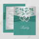 Detta eleganta och romantiska silvergrå och turkosa blomsterbröllop R.S.V.P.-kort har ett UTRYCKT band och ett par UTRYCKTA diamantjuveler och en falsk glitterhjärtspjäll på sig som matchar bröllopsinbjudan nedan. Texten och typen av papper är anpassningsbar. Vissa av papperna kommer att ändra färgen på designen. Jag skulle INTE använda de guldfärgade, champagneguldfärgade eller silverfärgade metallpapperna eftersom de kommer att fördunkla designen och missfärga diamanternas vita utan att tillföra någon extra glans än vad du skulle få med det metalliska is-papperet. Filtpapper kommer också att missfärga designen. OM du ändrar storlek på inbjudan, eller om du byter teckensnitt, eller storlek på teckensnittet, kan en del av designen och/eller texten kapas. Allt kommer att skrivas ut som du ser det på din skärm. Jag kommer inte att se din inbjudan, och Zazzle kommer INTE att rätta någonting (stavfel, feljustering etc.). Om du behöver hjälp