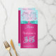 Detta söt shock rosa och akvblått blommigt, sött 15-menykort, har ett tryckt turkosband med en tryckt gemen- och diamantjuvelbrok som överensstämmer med Quinceanera födelsedagsfest inbjudan som visas nedan. Om du behöver hjälp med att anpassa det här med din information eller om du behöver andra matchande objekt kan du skicka e-post till niteowlstudio@gmail.com.